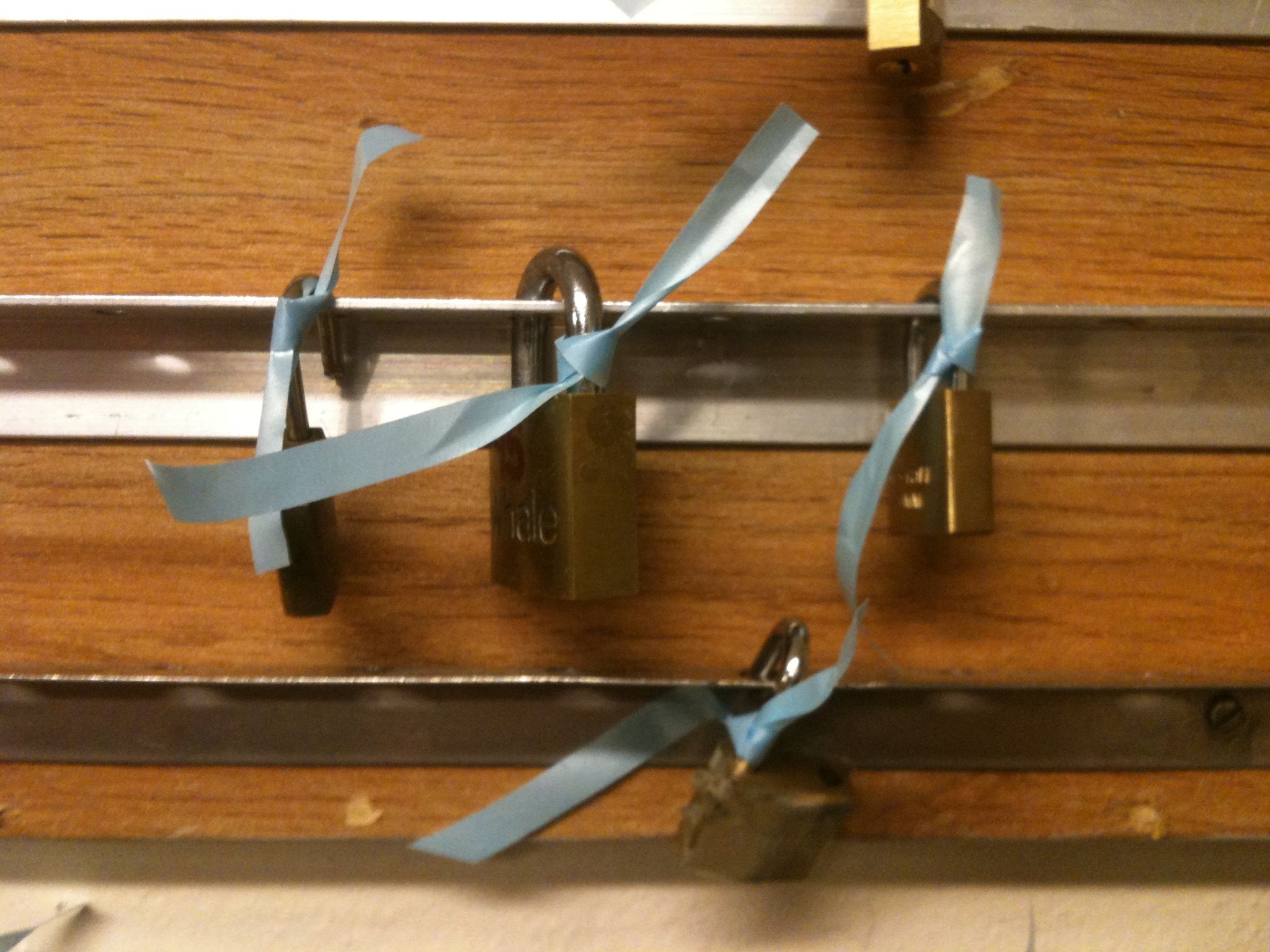 Hengelåser med båndFor å passe på at gamle hengelåser (fra fraflyttede beboere) ikke reserverer vasketid unødvendig, har alle hengelåser fått et bånd på seg. Bruker du låsen din, vennligst fjern båndet på din lås og heng låsen på den nederste listen.